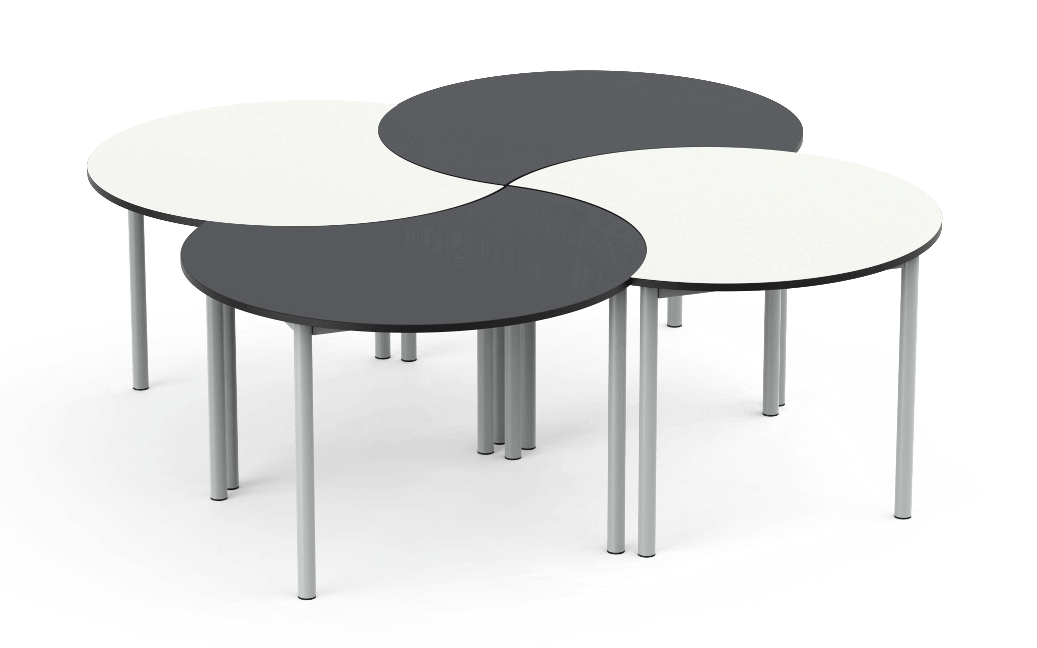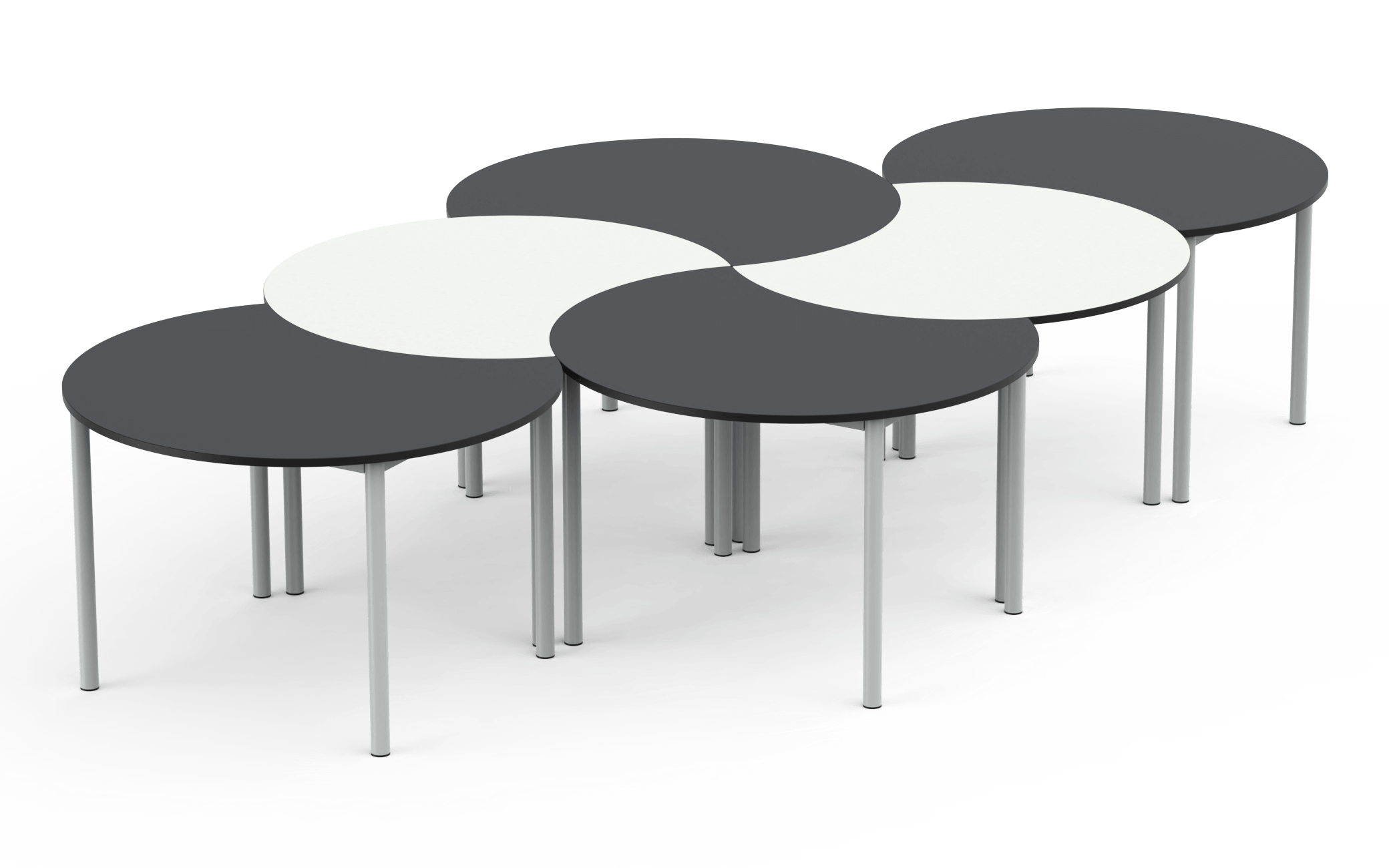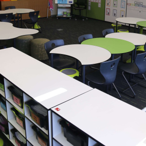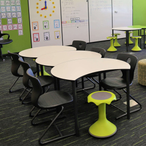 The adaptable approach to collaborative learning. Easily interlocked to form shapes for larger working groups.