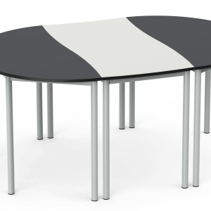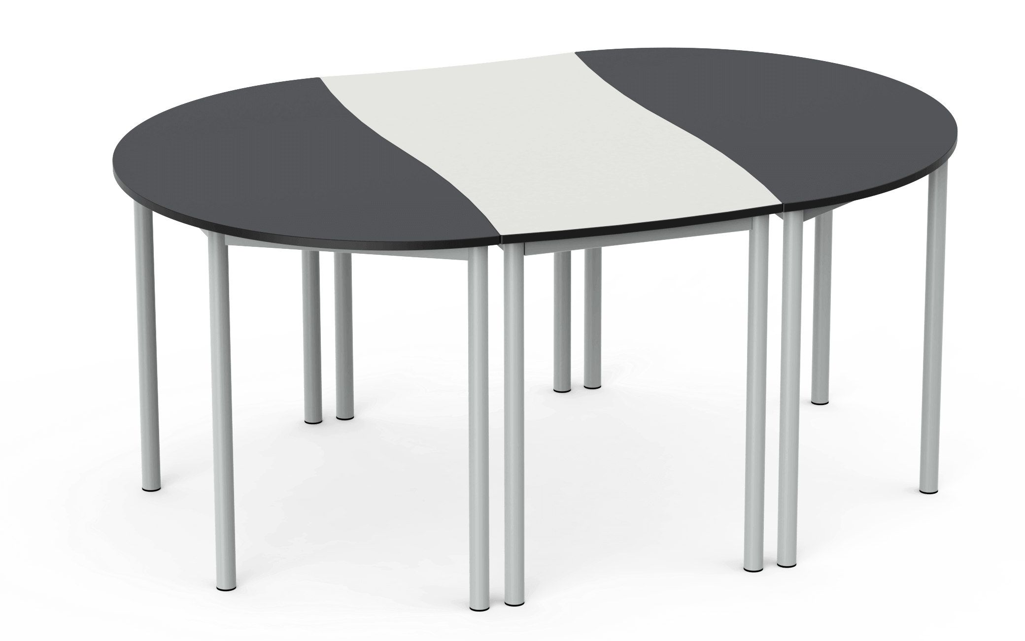 Wave Tables fit together to create groups of 2–4 tables accommodating 4–8 students. The curved design gives students a sense of their own working space while at the same time conserving classroom area.